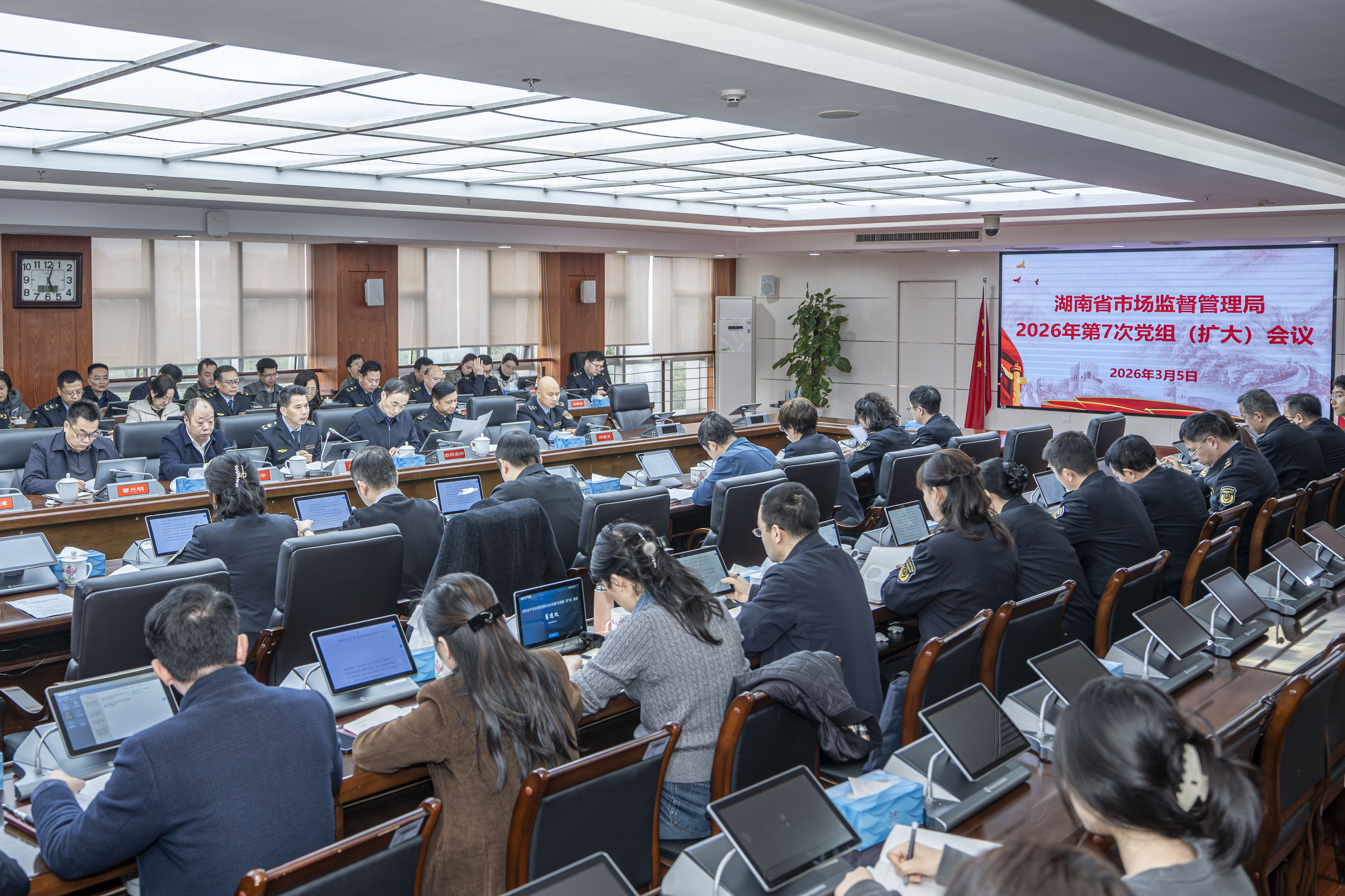 3月5日,省市场监管局党组召开2026年第7次党组(扩大)会议,学习贯彻习近平总书记关于树立和践行正确政绩观学习教育的重要讲话和重要指示精神,贯彻落实中共中央办公厅通知要求,按照省委工作安排,研究部署省局党组学习教育工作。受省局党组书记、局长彭华松委托,党组成员、副局长向延华主持会议并讲话。