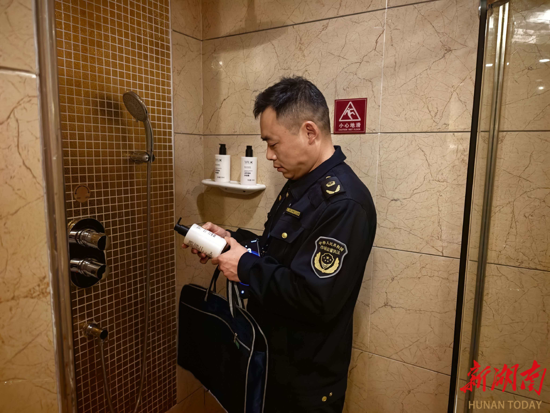 湘潭县市场监督管理局开展酒店宾馆客用洗发水、沐浴露等化妆品专项监督检查行动。