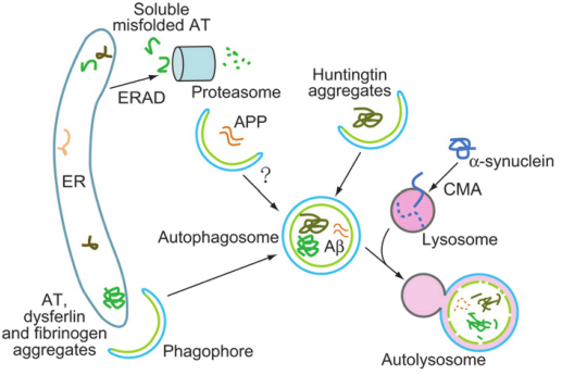 图4.通过自噬途径清除蛋白质聚集物[16]。