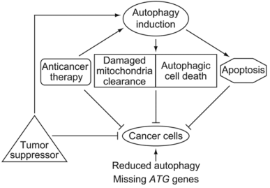 图6.自噬与不同抑瘤过程的关系[16]。