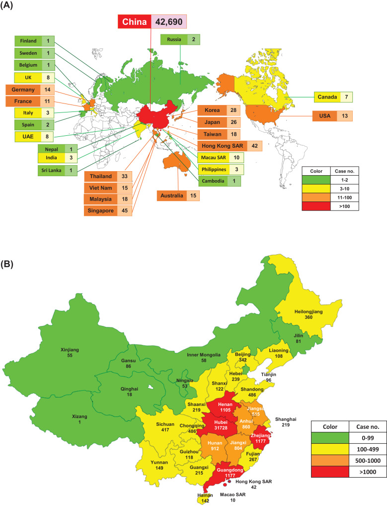 摘要:2019年底,我国出现严重急性呼吸综合征冠状病毒2型(SARS-CoV-2,原名2019年新型冠状病毒或2019-nCoV)病(COVID-19),已在全球范围内引发大规模疫情,并成为重大公共卫生问题。截至2020年2月11日,世界卫生组织的数据显示,在28个国家/地区,已确认的病例超过43000例,其中99%以上的病例在中国被发现。2020年1月30日,世界卫生组织宣布COVID-19为国际关注的第六次公共卫生突发事件。SARS-CoV-2与两种蝙蝠源性的严重急性呼吸综合征如冠状病毒bat-SL-CoVZC45和bat-SL-CoVZXC21密切相关。它通过人与人之间的飞沫或直接接触传播,感染的平均潜伏期为6.4天,基本繁殖数为2.24-3.58.。在由SARS-CoV-2(新型冠状病毒肺炎或武汉肺炎)引起的肺炎患者中,发热是最常见的症状,其次是咳嗽。从胸部计算机断层扫描图像中发现,最常见的发现是双侧肺累及毛玻璃样混浊。尽管美国的一例SARS-CoV-2肺炎对瑞德西韦反应良好,但中国正在进行临床试验。目前,控制感染以防止SARS-CoV-2的传播是主要的干预措施。然而,公共卫生当局应继续密切监测这种情况,因为我们对这种新型病毒及其相关的爆发了解得越多,我们就越能作出更好的反应。关键词:冠状病毒 2019-nCoV SARS-CoV-2 COVID-19 武汉肺炎 新型冠状病毒性肺炎 瑞德西韦SARS-CoV-2和COVID-19:除季节性流感外,腺病毒、冠状病毒229E/NL63/OC43、人博卡病毒、人偏肺病毒、副流感病毒1/2/3、鼻病毒和呼吸道合胞病毒A/B均为肺炎的报告病原体。此外,这些病毒会在社区获得性细菌性肺炎的环境中引起共同感染。利用分子方法,关于这些病毒在肺炎发病中的作用知识取得了重大进展。发现SARS-CoV-2是属于β-冠状病毒属的正义单链RNA病毒。系统发育分析表明,SARS-CoV-2与两种蝙蝠源性严重急性呼吸综合征(SARS)样冠状病毒bat-SL-CoVZC45(登录号MG772933.1)和bat-SL-CoVZXC21(登录号MG772934.1)有88-89%的相似性,但与SARS-CoV的相似性较远,约为79%,与MERS-CoV的相似性更远相似性约50%。。 Chen等基于RNA的下一代亚基因组测序方法从2019年武汉爆发的两例肺炎病例中鉴定出人类冠状病毒。它的整个基因组长度为29,881个核苷酸。基于ORF1a/1b、S和N基因的进化分析表明,SARS-CoV-2更可能是一种新的CoV,它是从动物中独立引入到人类体内的。根据基因组学调查结果,以及武汉市海产品市场中存在的一些蝙蝠和活动物,SARS-CoV-2可能来源于市场或周边地区与SARS-CoV-2有关的蝙蝠或蝙蝠粪便。流行病学:根据对中国大陆2020年1月10日至1月24日早期疫情的观察,发病率呈指数增长趋势,平均基本生殖数(R0)估计在2.24(95%可信区间:1.96-2.55)至3.58(95%可信区间:2.89-4.39),报告率增加2至8倍。根据2019年12月31日至2020年1月28日的数据进行的另一项估算表明了类似的发现,COVID-19的R0为2.68(95%可信区间:2.47-2.86),流行倍增时间为6.4 天。目前对COVID-19的平均潜伏期估计为6.4天,范围为2.1至11.1天(2.5至97.5%),具有潜在的无症状传播。尽管情况正在演变,需要进一步更新数据来确认这些估计,但很快就有可能爆发大规模的COVID-19。截至2020年2月11日,世界卫生组织的数据显示共有43103例COVID-19。全球、中国和中国境外的COVID-19病例每日总数稳步上升。28个国家/地区已报告确诊病例,包括中国大陆,日本,新加坡,香港特别行政区(SAR),泰国,韩国,台湾,澳大利亚,马来西亚,德国,越南,美国,澳门特别行政区, 阿拉伯联合酋长国,加拿大,法国,菲律宾,英国,意大利,印度,俄罗斯,芬兰,瑞典,斯里兰卡,柬埔寨,尼泊尔,西班牙和比利时。中国的COVID-19患者人数最多(n = 42,690),其次是新加坡(n = 45)。亚洲报告的病例最多,其次是欧洲,北美和澳大利亚。在中国,湖北的感染患者数量最多(n = 31,728),其次是广东(n = 1177),浙江(n = 1117)和河南(n = 1105)。全球共报告了1,017例死亡,而在中国大陆以外仅发生了两次死亡,在香港特别行政区和菲律宾各发生了一次。根据台湾疾病预防控制中心的数据,截至2020年2月12日,来自28个国家/地区的报告有45,167例COVID-19病例,其中1115例患者死亡(2.5%)。 在45,167例病例中,大多数发现于中国大陆(n = 44,653),报告的死亡率为2.5%(n = 1,113)。