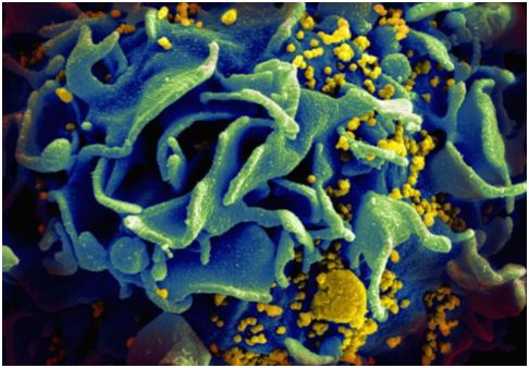 关于受HIV感染的T细胞的扫描电镜图,图片来自NIAID。