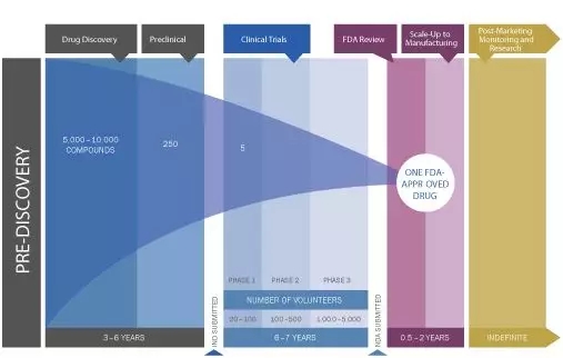 新药从设计到上市通常需要10-15年的时间,经历漫长的研发过程和层层考验,同时需要大量的资本投入。药物通过发现筛选、临床前研究、临床试验、新药NMPA/FDA上市申报等环节,最终成为稳定、安全、有效的药品,惠及人类健康。其中的每个研究阶段都至关重要,特别是临床前药物研究获得的结果对药物进入临床提供关键的数据指导,为优化临床开发计划提供有力的数据基础。