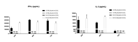 结果表明:IFN-γ 和 IL-2的表达水平在B-hCD3e和C57BL/6中无显著差异。