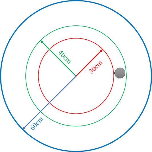 此外,平台的放置位置也是有讲究的,不能太靠水池边缘,因为这样小鼠可能学会的是绕圈求生;也不能放得太靠水池中心,这样小鼠也不需要记住方位,只需要在水池中心很小的范围搜索一下就行了。如果非要选定一个方位,那么平台圆心的位置设定在2/3半径和1/2之间(即图3中的红色圆形和绿色圆形之间的环状地带)。