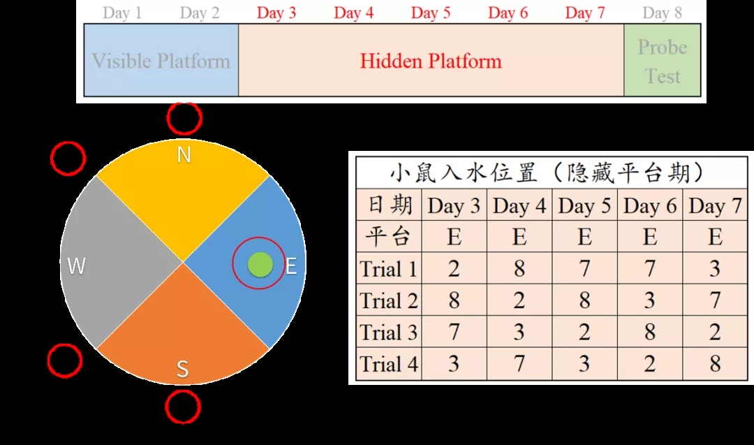 下面我们就来详细介绍以下这种标准水迷宫实验的流程: