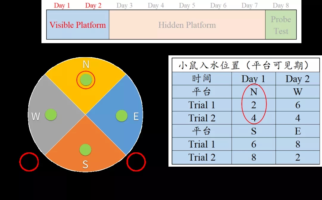 (9)平台可见的实验有时1天以内就可以检测到小鼠运动和视力是否有明显问题,所以根据实验情况,有时也只需要一天时间。