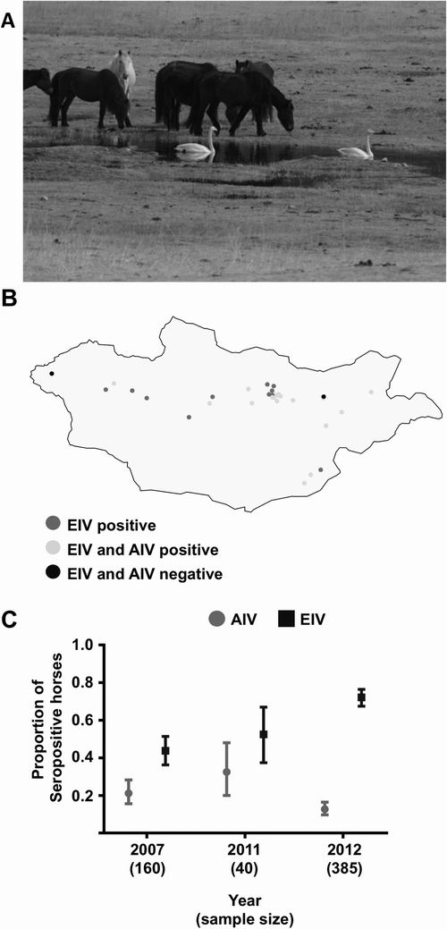禽流感病毒感染马但不传播,或者它们感染和传播但不引起疾病。英国医学研究理事会—格拉斯哥大学病毒研究中心发表于《公共科学图书馆—病原菌》的一篇研究文章指出,禽流感病毒感染蒙古的马却不会引起大规模的疾病暴发,因为它们无法获得关键的基因变化,从而实现更大的跨物种传播。通讯作者Pablo Murcia表示,未来的研究旨在了解禽流感病毒和马流感病毒进行跨物种传播的障碍,将为深入了解哺乳动物流感发生的机制和决定因素提供依据。病毒性疾病对人类和动物构成持续威胁。病毒有时会在新宿主中传播,有时会带来毁灭性后果。目前尚不清楚是什么允许病毒感染新种群并在其中传播,但生态学和进化在这一过程中起着重要作用。然而,它们的相对作用将因所涉及的病毒和生态系统而异。甲型流感病毒是新兴病毒的典型代表。它们的主要自然宿主是野生鸟类,但它们也在人类、猪和马身上传播。为了更好地了解甲型流感病毒在自然界中的传播方式,以及介导病毒出现的生态和进化因素,Murcia和同事对从蒙古野生鸟类中采集的20多种禽流感病毒进行了测序。通过将实地研究、系统遗传学和实验感染相结合的研究方法,他们以前所未有的细节记录了在自然界中病毒出现初期暴发之前的阶段。结果显示,禽流感病毒在遗传上与1989年导致马流感暴发的禽源性病毒有关。实验感染表明,大多数禽流感病毒在马的呼吸道中复制,不会造成任何组织损伤。这解释了疾病没有暴发的原因。此外,根据血清学证据,蒙古的马经常在广阔的地理区域接触病毒,而没有引起临床上明显的暴发。研究结果表明,能在马身上复制的禽流感病毒引起的马感染,比最初认为的更为常见,而不能获得关键的基因变化是疾病发生的主要障碍。Murcia补充道:“尽管有大量的生态机会存在,但新的流感病毒并没有在马身上出现。这很可能是由于病毒无法获得必要的基因组变化以适应马。”