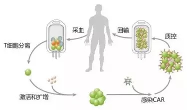 一个典型的CAR-T治疗流程,主要分为以下五个步骤[5]。