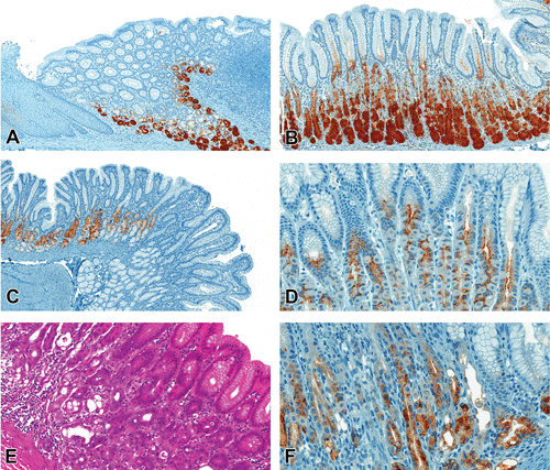 摘要:在非人灵长类动物的非临床研究中经常观察到胃粘膜损伤。由于胃的显微评价通常是一个终末过程,我们的目的是确定血清胃蛋白酶原I(PG I)是否可以作为检测猴胃粘膜损伤的无创生物标志物。在给药之前和/或在11个月的研究结束时,测定食蟹猴(n=166)血清PG I。有无胃粘膜变性猴的平均PGI值(UG/L)分别为101和28。对于基线和终端PG I数据的猴,,有(n=57)和无(n=76)腺体变性的猴的平均皱褶变化(终末PG I与基线PG I的比率)分别为4.1(11.3)和1(0.28)。曲线下面(AUC)积显示出血清PG I对腺体变性的中等诊断准确性,AUC(SE)0.789(0.04),随着基线的折叠变化,诊断准确性提高,AUC(SE)0.816(0.04),与大型内科治疗一致。这些数据表明,血清PGⅠ是食蟹猴药物性胃粘膜损伤的一个有用的生物标志物。关键词:猴 胃 胃蛋白酶原I 生物标志物摘要:虽然胃粘膜损伤在毒理学研究中并不少见,但是目前还没有非侵袭性生物标记物反映临床前物种的胃粘膜状态。胃蛋白酶原是参与肽水解的天冬氨酸蛋白酶,在脊椎动物的胃消化中起着重要作用。胃蛋白酶原在胃腔的酸性环境中作为非活性的前酶被转化成胃蛋白酶,在物种内和物种间存在几种同种形式的胃蛋白酶原。在人类中,胃蛋白酶原I和II(PG I和PG II)是2种主要的胃蛋白酶原。在食蟹猴中,PG I占优势,占胃提取物中总胃蛋白酶原的近90%,其余为PG II。胃蛋白酶原主要分泌到胃腔中,但小百分比扩散到血流中。人血清胃蛋白酶原的水平被认为反映胃粘膜的形态和功能状态。例如,虽然PG II更广泛地分布于人的胃,但胃粘膜萎缩与血清PG I水平的逐渐降低有关,而血清PG II水平通常保持稳定。因此,随着慢性萎缩性胃炎从胃窦向胃体发展,PG I/PG II比值的降低被用于监测萎缩性胃炎的发展和进展,萎缩性胃炎是胃癌发展的一个重要危险因素。PG-Ⅱ的升高对幽门螺杆菌引起的慢性胃炎的敏感性高于PGI或PGI/II比值的变化。由于幽门螺杆菌是胃癌发生的另一个危险因素,血清学越来越多地与高危人群中胃蛋白酶原的测定相结合。PG I和PG II的免疫测定已显示出用于监测患者胃损伤的诊断价值;然而,在非临床研究和兽医临床实践中,由于缺乏物种特异性免疫测定,胃蛋白酶原活性测定更常用作消化活性的替代物。由于这些催化测定缺乏特异性,因为它们除了胃蛋白酶外还测定其他血清蛋白酶的活性,因此需要开发特异性分析来评估胃粘膜状态。由于主细胞广泛分布在猴的胃中,血清PG I是胃粘膜损伤的一个极好的候选标志物。目的是通过对食蟹猴毒理学研究的回顾性分析,评价血清PG I作为药物性粘膜损伤标志物的诊断价值。动物:猴年龄2.5~6岁,在12小时光照/12小时暗循环中单独饲养(64~84°F,相对湿度30%~70%)。从食蟹猴(n=166)中收集血清用于PG I分析,试验品每天给雄性或雌性猴3次剂量(n=1~3),持续4至28天。除了一项吸入研究外,猴都通过口服途径给药,两项研究包括恢复期评估胃黏膜损伤的可逆性。所有研究的标准临床病理参数血样和血清PG I测定均在研究前1次或2次在研究结束时从未经麻醉的禁食猴的股骨血管中收集,除了2项研究,其中仅收集终末样本用于PG I分析。在静脉或肌肉注射盐酸氯胺酮后,在戊巴比妥麻醉下通过失血处死猴。将标本组织收集固定在10%中性缓冲福尔马林中,石蜡包埋,苏木精和伊红染色,进行组织病理学观察。主要病理过程的形态学诊断基于对胃切片的综合评价,包括贲门、胃底、胃体和胃窦。病理组织学严重程度评分从0(无变化)到4(严重病理)进行评估。组织病理学评分=0的动物定义为“阴性”,组织病理学评分>0的动物定义为“阳性”。PGI 分析:用人PGI ELISA试剂盒测定猴血清PGⅠ。在对研究样本进行评估之前,进行了方法验证程序,以确认该试剂盒为测定猴血清中PG I提供了可接受的性能标准。使用猴血清进行批内和批间精密度、线性度和恢复评估。在96孔板的20个单孔上测定猴血清样品的精密度。对于批间精密度,样品在96个孔板的5个上运行四倍,并且BIIT HIT质量控制样品在96个孔板中的10个重复运行。通过测定新鲜采集的样品中PG I的浓度,以及冷冻保存(20°C)6个月后,评价PG I在猴血清中的稳定性。对5只雄性灵长类动物和4只雌性灵长类动物(n=18只雄性猴和10只雌性猴)的血清样品中PG I的生物学变化进行了评估,其中每个对照组的动物数量从1到8只。对照组猴取样前禁食一夜,在5至63天连续取样2至6次,在研究结束时检查胃组织病理学。还测定了8只猴(n=4只雄性和4只雌性)在4周样本收集中的血清PG I浓度,收集了未禁食时的样本,以评估食物对血清PG I浓度的影响。免疫组织化学:在经Ventana Discovery系统染色的福尔马林固定石蜡包埋的猴胃切片中,评估PG I在猴胃中的定位。ELISA法检测猴血清具有良好的精密度(检测内CV%<6,检测间精密度CV%<15),稀释线性(r2=.999),回收率(95-109%)。在-20℃保存6个月后再分析的血清样品中,原批Biohit试剂不能测定PG I,但PG I的浓度与新鲜样品的相应值相当,因此血清PG I在-20℃下最长可稳定6个月。PG I值无性别差异:雄性猴血清PG I平均基线浓度为31.7μg/L,雌性猴血清PG I平均基线浓度为28.2μg/L。胃组织病理学与PGⅠ定位:胃组织学检查分为六个大体形态诊断。大约一半的猴没有观察到胃部异常,腺体变性伴或不伴再生是最普遍的病理发现。腺体变性的特征是单细胞坏死、脱落或缺失,氧化性腺上皮常伴有腺体扩张,腺体内衬上皮减弱和管腔