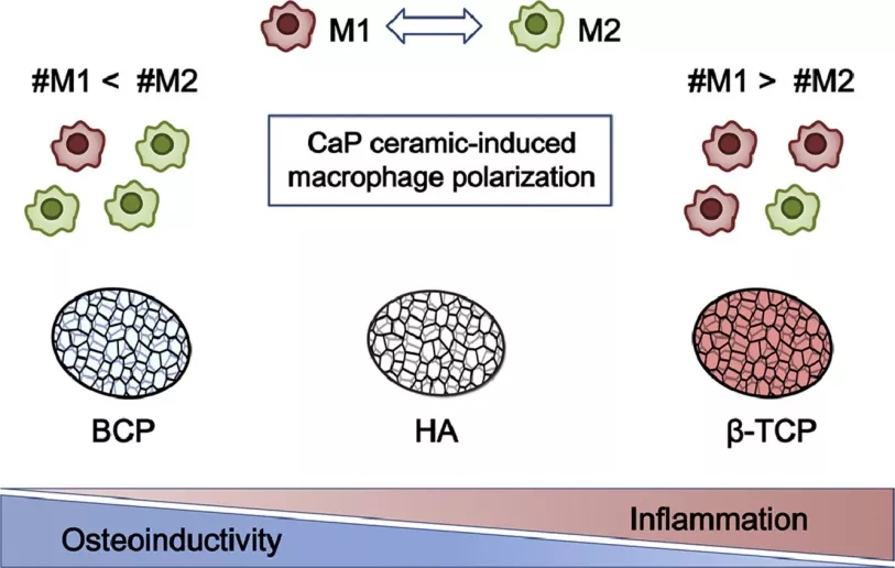 先前有研究表明,骨科材料会影响巨噬细胞的极化。基于此,研究人员利用小鼠肌内植入模型和三种常用的磷酸钙陶瓷材料,以证明巨噬细胞极化在材料诱导的骨形成中起着关键作用。