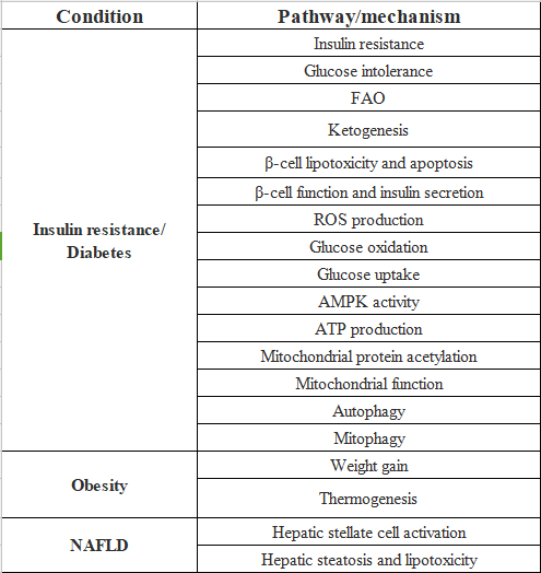 表1. SIRT3调节对代谢紊乱和相关途径的影响。