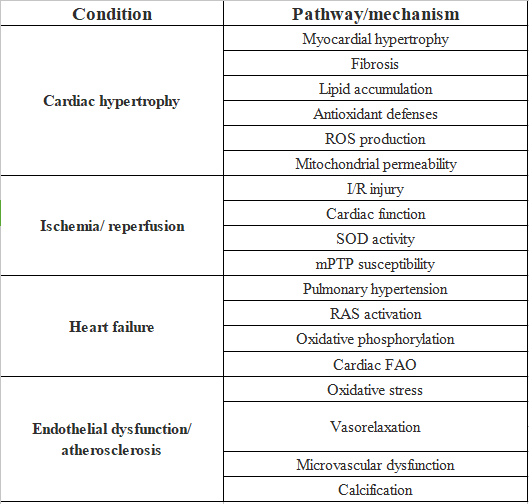 表2. SIRT3调节对心血管疾病和相关途径的影响。