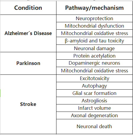 表3. SIRT3调节对神经退行性疾病和相关途径的影响。