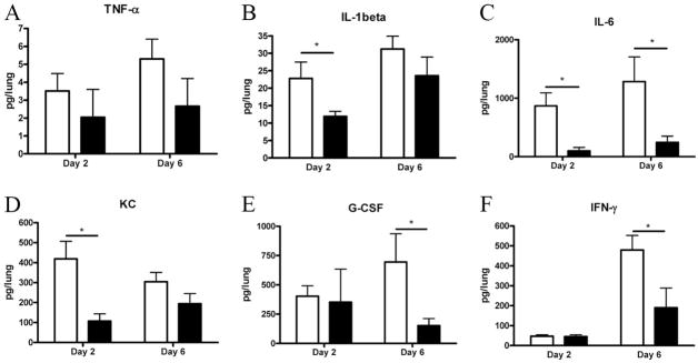 表1. 感染流感后野生型小鼠和IL-17RA敲除小鼠肺组织匀浆中炎性细胞因子水平的差异