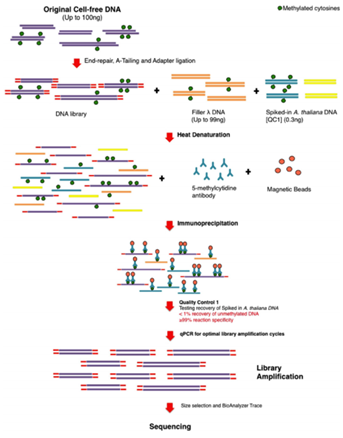 在一项新的研究中,在加拿大玛嘉烈公主癌症中心研究员Daniel De Carvalho博士的领导下,一个研究团队以血液样本作为测试对象,将“液体活检”、甲基化分析和机器学习相结合,开发出一种灵敏的基于免疫沉淀的测试方法来分析少量血浆循环游离DNA(cell-free DNA, cfDNA)中的甲基化组(methylome),从而能够在癌症的最早阶段检测它,并对它进行分类。这种测试方法称为游离甲基化DNA免疫沉淀高通量测序(cell-free methylated DNA immunoprecipitation and high-throughput sequencing, cfMeDIP–seq),用于在不使用亚硫酸盐的情形下对血浆cfDNA进行全基因组甲基化分析。相关研究结果于2018年11月14日在线发表在Nature期刊上,论文标题为“Sensitive tumour detection and classification using plasma cell-free DNA methylomes”。