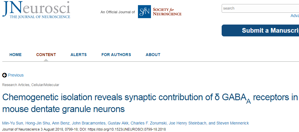 图片来源: Mennerick实验室这一最新研究以“Chemogenetic isolation reveals synaptic contribution of δ GABAA receptors in mouse dentate granule neurons”为题发表在《Journal of Neuroscience》杂志上。文章通讯作者、精神病学教授Steven Mennerick说:“30多年前,FDA批准了最常用的抗抑郁药物,例如百忧解、帕罗西汀和左洛复。然而自那以后,新的抗抑郁药物就一直缺乏。因此开发更有效的抗抑郁药物势在必行。”