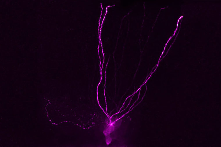 图为大脑海马区的一个染有染料的神经元。研究人员正在测试神经甾体药物如何与这些神经元上的GABA受体结合,以开发更好的抗抑郁药物。神经甾体药物brexanolone是FDA批准的治疗产后抑郁症的药物。