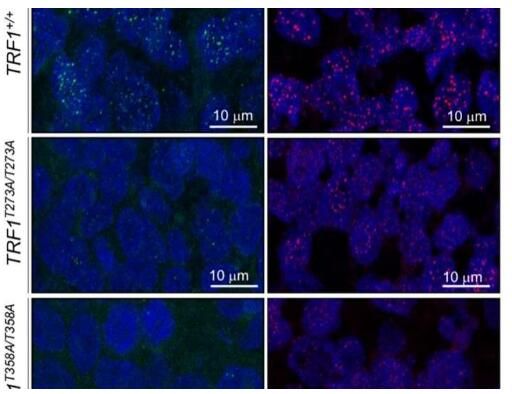 文章中,研究人员开始研究确定端粒是如何参与到上述信号通路中的,首先他们利用基因编辑工具CRISPR/Cas9对细胞中的TRF1蛋白进行修饰从而使其AKT变得无应答,这样一来,TRF1和端粒就会对AKT所传递的任何细胞外信号变得不可见,这些细胞中的端粒会缩短并且会积累更多损伤,更为重要的时,细胞不在会产生肿瘤了,这就表明,端粒是AKT的重要靶点,而且其在癌症发生过程中扮演着关键角色。