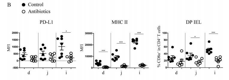 微生物群对小肠中MHC II和PD-L1的表达以及DP IELs的分化至关重要