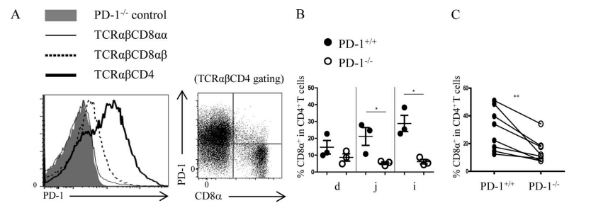 PD-1信号通过抑制ThPOK表达来刺激DP IELs的分化