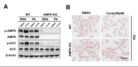 抑制AMPK磷酸化,能消除虫草素介导脂毒性肝细胞和HFD诱导NASH小鼠的脂质蓄积和炎症抑制