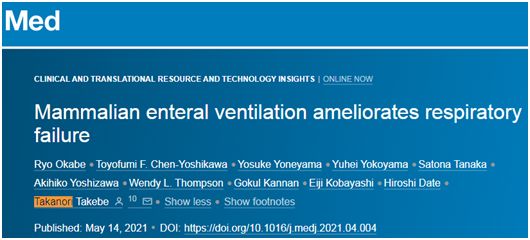 Ryo Okabe et al. Mammalian enteral ventilation ameliorates respiratory failure. Med, 2021, doi:10.1016/j.medj.2021.04.004.