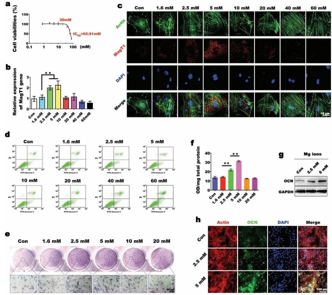 通过研究小鼠胚胎,研究人员发现镁转运蛋白-1(MagT1)在软骨内成骨区有选择性地高表达,还检测到MagT1在大鼠骨髓间充质干细胞(BMSCs)成骨分化过程中的高表达。有充分的文献证明,软骨内骨化是一种先天血管化骨形成的过程,表明MagT1的表达可用于血管化骨再生。有研究报道,通过生物材料释放Mg2+可诱导大鼠骨髓间充质干细胞MagT1上调。