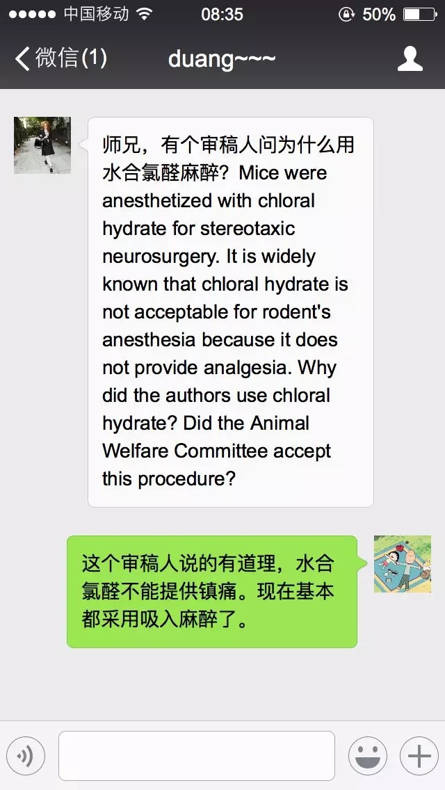 最近有同学投稿时遇到审稿人问:为什么要用水合氯醛麻醉?