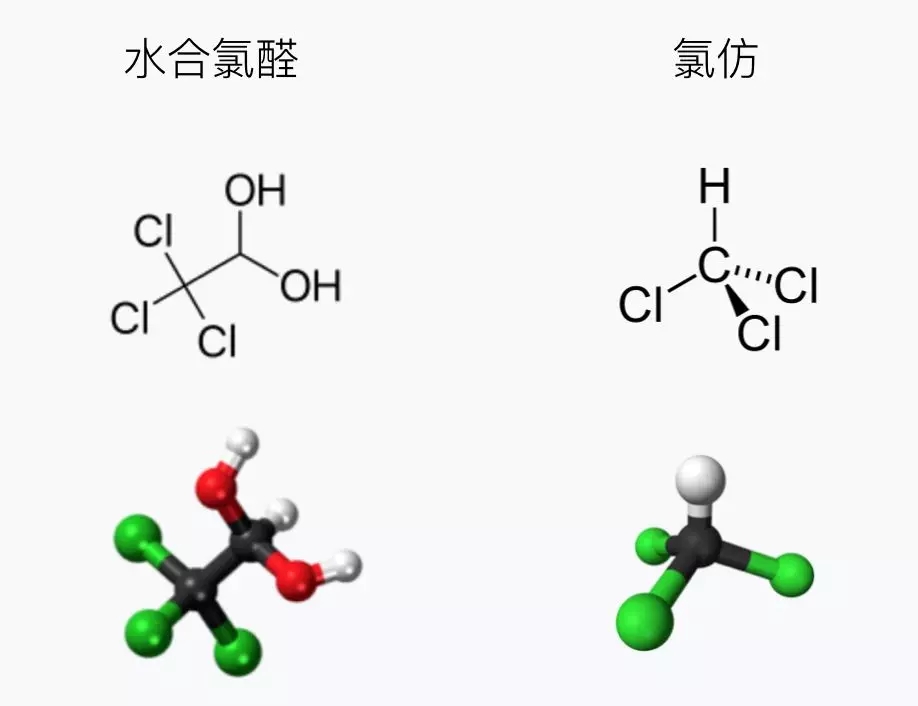 Fig-1 审稿人问为什么要用水合氯醛作为麻醉科医生,这已经不是第一次回答这样的问题了。之前还有同学问:「投稿美国一篇杂志,动物处死方法写了水合氯醛腹腔注射,结果,编辑回复因为美国 AVMA 协会不允许使用水合氯醛作为安乐死的方法,让解释用这个方法的特殊理由,可是国内外都有文章在用这个方法,这个怎么办?」1 水合氯醛的历史大概可以从 200 年前说起。1847 年,英国产科医生 James Simpson 开始为产妇行乙醚吸入麻醉,缓解分娩疼痛;到 1853 年又尝试使用氯仿,据说他还给女皇用氯仿吸入麻醉做了分娩镇痛,使其顺利生下王子,从而使氯仿在英国得到公认。1872 年,人们发明了可静脉注射的水合氯醛,开创了静脉全身麻醉的先例。下图是水合氯醛和氯仿的化学结构图,可以看到他们都有相同「三氯」基团,这个基团在体内代谢后变成亲脂性更强的三氯乙醇,作用于中枢神经产生麻醉效果。
