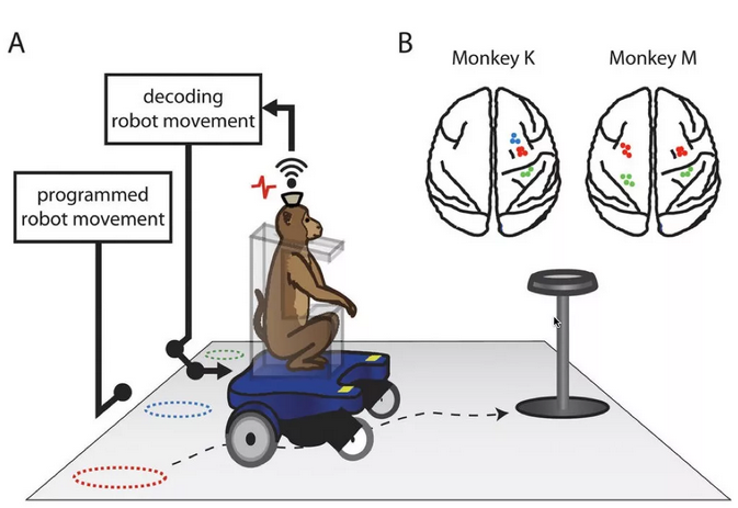 通过脑机接口控制椅子移动的猴子 图片来源:Innovation Memes“你可以想象一下,挖掘所有数据来看看大脑正在做什么有多困难,”于说。 “我们的眼睛没有经过足够的训练,无法发现其中的精细模式。”但是芯片内置的高级统计分析功能可以做到这一点,被识别出的模式可以识别测试对象进行特定运动时的神经活动。例如,系统可以辨别被测试对象伸展手臂时究竟是要向左还是向右,向上还是向下。然后研究人员可以使用 BCI 的输出,将代表某个特定躯体运动的神经活动转换为计算机屏幕上光标的方向控制。通过试错和训练,操作界面的人或动物能通过想象他们的手臂活动来移动计算机的光标,这是可以通过学习掌握的。当于、巴蒂斯塔和同事们在猴子反复进行简单的挥手任务时监测了它的运动皮层,却发现相关神经元没有产生独立的发放活动:被测量的 100 个神经元的活动从统计学上能够用大约 10 个神经元来代替,这些神经元能分别激活或抑制其他神经元。在研究人员的分析中,这个结果显示为一组数据点,包含有一小部分 100 维数据的空间。卡耐基梅隆大学生物医学工程教授史蒂文·蔡司(Steven Chase)说:“我们将其称之为先天流形(intrinsic manifold,流形是局部具有欧式空间性质的空间),因为我们认为这是大脑的固有特性。这个空间的维度高度预示着这些神经元的功能。”2014 年,研究人员观察到,如果被试对象在学习新任务的过程中神经活动模式涉及这种先天流形,就可以更容易地学习新任务。于说,这个结果是有道理的,因为处在先天流形维度的任务对大脑的要求与其潜在的神经结构是一致的。完成这项研究后,该团队将注意力转向了学习期间神经活动如何变化的问题, 他们近日在 Nature Neuroscience 上发表了一篇论文。(https://www.nature.com/articles/s41593-018-0095-3)为了找到上述问题的答案,研究人员首先让配备有 BCI 的灵长类动物熟练地掌握将光标左右移动的任务。然后,团队改变了移动光标的神经活动要求,想看看大脑内的神经活动会有怎样的新模式出现——内在流形中只要出现了一个新的点,就代表着受试的动物已经在新条件下完成了移动光标的任务。研究人员希望看到他们称之为“重排”(realignment)的学习策略的证据。在这种策略中,动物会在新形成的神经活动模式中选择一种最自然的开始使用。于和蔡司的合作者、目前在斯坦福大学工作的马修·戈卢布(Matthew Golub)表示:“受制于先天流形的各类限制,重排是动物可以选择的最佳策略。” 或者,猴子的大脑可能通过“重缩放”(rescaling)的过程来学习——参与初始学习任务的神经元会增加或减少它们的发放率,直到它们“磕磕巴巴”地形成一个新的模式来完成新任务。但令研究人员惊讶的是,无论是重排还是重缩放都没有发生。相反,他们观察到一种称为“重关联”(reassociation)的非常低效的方法。受试动物只是通过重复初始神经活动模式并对其进行交换来学习新任务。先前将光标向左移动时的神经模式被用到了将光标向右移动的任务中,反之亦然。“它们正在重复过去曾经做过的事,”戈卢布说,“在新任务中仍是如此。”为什么大脑不去使用最优的学习策略?该团队的研究结果表明,正如神经结构将神经元的活动限制在先天流形空间里一样,一些更强的约束限制了实验过程中的神经元活动重组。巴蒂斯塔认为,重排过程中,神经元之间突触连接的改变可能很难快速完成。“大脑的短期可塑性肯定比我们想象中更加有限,”他说。“学习需要忘记。大脑可能不情愿放弃它已经学会了的事情。“