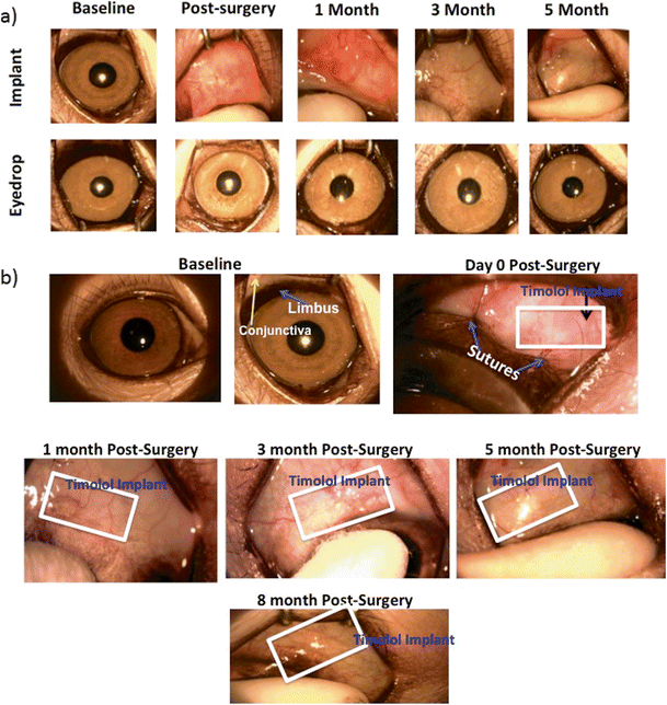 摘要:马来酸噻吗洛尔(TM)已使用多年,能降低青光眼患者眼内压(IOP)。然而,由于低生物利用度、高药物消耗和缺乏患者依从性,局部给药方式(滴眼剂)还远远不够理想。不达标的眼压控制会导致疾病进展,最终导致失明。我们开发了一个结膜下TM的缩微胶片,TM持续释放,使用可生物降解的弹性体(乳酸-己内酯)(PLC)。该共聚物具有生物相容性,具有柔韧性和机械特性,患者可接受的植入物。控制TM 3个月的释放是具有挑战性的,通过组合使用积层和混合的(乙二醇)(PEG)共聚物,我们能够研制出一种TM掺入的生物可降解薄膜,可在90天内递送TM的治疗剂量。在灵长类动物模型中进一步证实了这一数据,单次植入持续眼压降低5个月。有可接受的生物相容性和部分降解。关键词:生物可降解 聚合物 青光眼 持续释放简介:青光眼是一种进行性视神经病变,以视神经的特征性改变和视野丧失为特征。青光眼是一种与年龄有关的眼病,影响全球6050万人。根据世界卫生组织(WHO)的统计,青光眼是世界上第二大失明原因。虽然青光眼综合征的分类有正常的张力性青光眼(NTG)和高压(HTG)青光眼,眼压升高是青光眼的主要危险因素。如果不及时治疗,70%的疾病继续恶化。根据早期青光眼的治疗试验,眼压每降低1-mmHg,青光眼进展的风险降低了10%。应用最广泛的一种医疗方法是马来酸噻吗洛尔(TM)滴眼液。马来酸噻吗洛尔是一种β-肾上腺素能受体拮抗剂,通过减少房水的产生来降低眼压。除了卓越的眼压降低效果外,治疗结果的有效性是可变的,并且高度依赖于患者的依从性。最近的一项临床调查发现,近80%的被诊断为青光眼的患者在1年后停止使用眼药水,3年停止使用的人达到90%。而且,由于药物的生物利用度低,这种使用方式不是最优的,通过引流泪液角膜前区迅速消失。持续药物输送是克服药物低生物利用度和药物波动问题的最佳选择,有助于消除患者依从性问题。开发TM运载系统的努力一直在进行中,包括fornex插入,水凝胶隐形眼镜,纳米纤维和微球。此外,由于微球的粒径较大,载药量相对较低,每注射一次所需体积很可能是相当可观的。因此,迄今为止,没有可行的TM递送系统,这项工作的目标是开发一个系统,允许噻吗洛尔放置在结膜下持续和可控释放药物。TM每日给药两次。每日剂量约为250微克。通过滴眼液滴的生物利用度大约只有1-2%,表明有效日剂量为2.5~5μg/天。在这项工作中,我们评估了由马来酸噻吗洛尔(乳酸-己内酯)(PLC)和(乙二醇)(PEG)的共聚物,通过释放实现每日的目标剂量约2.5微克,连续3个月。这个微缩的结膜下植入术是微创手术,可被病人接受。我们认为这项研究是迄今为止最长的持续释放噻吗洛尔的报告日期,实现有针对性的每日剂量。为了验证体外、体内的可译性,植入在灵长类动物的眼结膜下长达5个月的时间显示是安全和有效的。研究结果表明,该系统提供了治疗青光眼的模式转变。材料和方法: 体外释放研究: 在37°C , 10×10毫米的薄膜在玻璃瓶中进行孵育,每个含有缓冲溶液3毫升. 采用反相高效液相色谱法分析TM和TB释放介质中的浓度. 聚合物的降解: 用质量和分子量的变化对聚合物的降解进行了表征。10×10毫米膜浸泡在缓冲溶液中(pH 7.4)和在37°C.培养。每周固定的时间点更换缓冲溶液,从缓冲液中取出一些薄膜,用去离子水漂洗,然后在37°C真空炉中干燥至少7天。用凝胶渗透色谱(GPC)配备折射率检测器,测量干燥样品的质量,然后进行分子量测定。所有样品在使用前,37℃用环氧乙烷灭菌24小时后植入入猴体内。动物模型:青光眼猴模型 肌内注射氯胺酮(20 mg/kg)和马来酸乙酰丙嗪(0.25毫克/公斤)对灵长类动物进行麻醉。在所有程序中监测他们的气道、呼吸和脉搏。一到两滴1%利多卡因作为局部麻醉来减少可能的不适,9只非人灵长类动物用于实验,随机分为两组:组1,高眼压猴(N = 6)单球结膜下植入4毫米×6毫米TM微缩胶片。组2,高眼压猴(n=3)双眼接受TM滴眼液,每日两次,连续28天。非人灵长类动物结膜下植入TM胶片:手术是在无菌条件下进行的。组1非人灵长类动物接受结膜下植入TM微缩胶片。简单地说,进行了有限的结膜剥离术,然后插入一个微型胶卷,在角膜缘后2 mm处缝合,并用两个10/0尼龙缝线固定。手术眼外用1%妥布霉素软膏连续5天。眼压监测与临床检查:为了进行眼压测量,使用氯胺酮,5毫克/千克,对非人灵长类动物进行麻醉。如上所述,应用表面麻醉。通过眼压计每周下午2-4点测量眼压,连续1个月,第二个月两周,第3个月,第4、5个月。每只猴大约需要5分钟。手术前所有动物每日测量一次基线眼压,连续三天。测量6-8次,取平均眼压。临床检查:非人类灵长类动物被麻醉,在注射或局部用药后,每天对眼睛进行视觉检查,以观察注射部位的结膜红肿、发炎或感染迹象。在注射前和之后每周使用裂隙灯显微镜检查前房和后房。监视猴任何重大变化如眯眼,或异常行为表明疼痛或严重不适。结果:青光眼和高眼压症患者局部应用噻吗洛尔是降低眼压最常见的治疗选择。局部使用医用眼药水效果不佳,而且药物消耗量很高,不能持续多个小时。因此,对于慢性病患者,病人依从性差是一个重大挑战。控制释放:提高TM亲脂性,从而维持其释放时间;PLC与PEG共聚物的混合,可减少突发效应和持续释放,特别是高载药量。使用夹层膜,即三层膜,在中间加入药物层以减少破裂和持续释放。体内评价