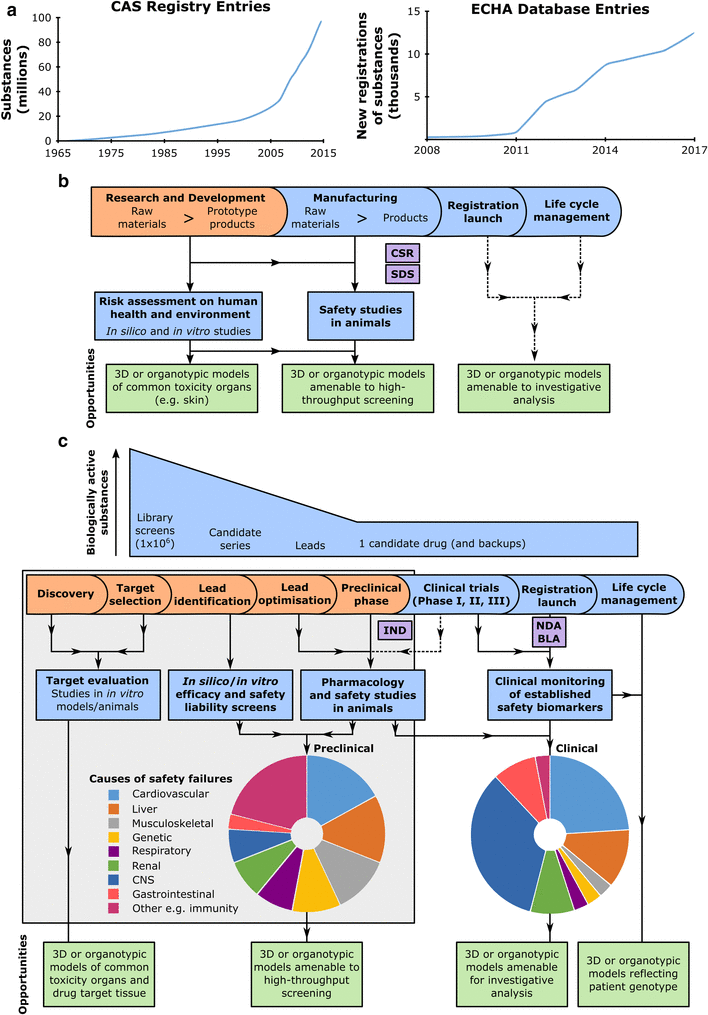 摘要:发展改进、创新的模型用于检测化妆品中的化学成分、化学品或药物的毒性对将新产品及时安全高效地推向市场是至关重要的。此外,改进毒性检测模型可以减少意外的上市后毒性的发生率,减少或消除动物试验的需要。必须保证药品、化学品或化妆品新产品的安全性,因此需要对毒理学特性进行评估。公认的方法是采用动物实验。减少,优化,并取代动物试验、体外模型创新的器官已经出现。这种模型不同层次复杂性各异,从简单的,自我组织的三维(3D)细胞培养到更先进的基于支架的多个细胞类型组成的共培养。本综述概述了毒性试验的最新进展,包括三种主要器官类型:心脏、皮肤和肝脏的体外模型。该综述还审查了欧洲和英国等对模型的监管,并总结了最佳做法,以促进接受和适当使用先进的体外模型。关键词:体外3D模型 心脏 皮肤 肝脏简介:当开发新型药物、化学品或个人护理产品时,工业界必须评估其使用对人类健康造成的风险。因此,必须向管理局提供这些物质的性质、安全试验结果、风险评估以及适当控制风险的适当措施。强制性的注册和营销批准,以及批准的临床试验药物或个人护理产品。传统上,这种风险评估是基于在动物身上进行的安全测试,并假设动物对这些试验的反应与人类相似。虽然动物代表着系统的生物体,在生理和功能上与人类有着明显的相似之处,但也存在一些局限性。动物试验是劳动密集、费时、昂贵、伦理上具有挑战性的,不适合处理化学工业生产的大量物质或制药工业中的药物筛选过程。此外,已知物种的变异依赖于单一物种的试验,不足以批准人类的临床试验。这就是为什么药品监管部门要求在两物种动物体内测试,常用的啮齿类动物如大鼠、小鼠和非啮齿类动物如猪、狗,或食蟹猴。几十年来,动物试验一直是一个有争议的话题,自十九世纪以来就出现了有组织的反对。在体外试验中验证光毒性,细胞毒性,遗传毒性和心律失常已经建立在检测细胞DNA损伤以及心脏离子通道的抑制作用。这些测试是基于简单的细胞培养系统,采用哺乳动物细胞进行光和细胞毒性筛选。细菌和哺乳动物细胞进行Ames致突变试验和体外微核试验(MNT),检测表达人类HERG基因细胞系进行心脏安全性监测。体外试验和动物试验对急性和重度毒性的检测和慢性毒性试验有一定的效果。然而,这些测试仍然具有局限性,因为由于出乎意料的毒性约?1/3的候选药物在临床试验中失败。许多失败可以归因于心血管和肝脏毒性。典范案例是抗病毒药物非阿尿苷1992临床试验中,不可预见的毒性导致第三个病人由于乳酸性酸中毒引起的肝衰竭死亡。剩下的两个病人需要肝移植。这种毒性是非常相关的,因为它在人类中并不罕见,并且证明了临床前研究的预测局限性。最近的例子包括TGN1412的审判,尽管动物研究使用的新型免疫调节抗体CD28"superagonist"和使用低于500倍剂量对动物是安全的,但人的临床均失败。动物研究并不能预测到人一期临床的脂肪酸酰胺水解酶抑制剂BIA 10-2474毒性,其中五名患者神经系统损伤,第六人死亡。这些失败可能是由于在适当的实验动物和人类之间的进化距离的预测能力缺乏以及体外试验与体内环境的差异。动物对人类的毒性没有充分的预测,传统的二维(2D)细胞单层的体外试验既不是生理的,也不是系统的。三维(3D)细胞培养和体外模型的器官是缩小传统二维细胞培养模型与体内环境之间的差距的一种方法。三维培养产生具有生理相关属性的细胞如细胞极化,细胞或细胞-微环境相互作用,管腔形成,增殖减少,分化增加,以及RNA和蛋白表达的多种变化。因此,这些模型有望更好地代表真实组织的组织学和生理复杂性,以研究产品开发和生命周期管理中的毒理效应。自2013以来,欧盟全面禁止化妆品动物试验,因此创新型化妆品的需求变得尤为迫切。在这篇综述中,我们将讨论目前正在使用或最近开发的创新的体外模型,以及药品、化学物或化妆品行业毒理学安全评估的监管视角,为今后的发展提出建议。监管:动物试验和二维体外系统的局限性表明,需要更好的模型,可以被监管机构接受。例如,欧盟禁止对动物进行动物试验,荷兰政府在2025之前逐步取消使用实验动物进行安全测试,这就要求监管部门接受替代方法。替代细胞培养方法已经出现在工业界进行复合筛选之前。监管接受的第一个方面是法律框架是否允许替代方法。欧洲11个欧洲监管框架对欧洲市场上的化学物质的评价和承认提出了毒理学数据要求。对这些框架的分析显示,尽管大多数框架都将某些动物试验作为提供某些毒理学信息的标准(例如,重复剂量毒性),但除此之外,所有的框架都明确规定使用其他方法获取这些信息。例外的是兽医药物产品的框架,这种可能性的法律地位尚不清楚,因为这只是在不具约束力的准则中规定的。总之,在一个新的化学实体的安全评估中,没有任何法律障碍可以省略动物安全测试。免疫扩散带来的争论提出了自己的生物只能绑定与人类细胞和相关的动物模型安全评价是不可用的,在这种情况下,动物试验毫无价值。因此,得出的结论是,对人类细胞和人体组织进行广泛的测试是足够的,对非相关物种的毒性研究可能是误导性的,并且是令人沮丧的,符合国际监管指南ICH主题S6:生物技术衍生药物的临床前安全性评价一致性。替代模型的应