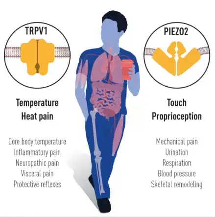 今年大卫·朱利叶斯 (David Julius) 教授和阿登·帕塔普蒂安 (Ardem Patapoutian) 教授因先后发现“温度和触觉感受器”共同获得2021年诺贝尔生理学或医学奖。他们的突破性发现,为我们对热觉、冷觉和机械刺激感知形成的理解奠定了基础,也开启了全新的研究方向[1],揭示了热觉、冷觉和机械刺激是如何被我们的神经系统感知的;温度和触觉感受器参与多种生理和病理过程。
