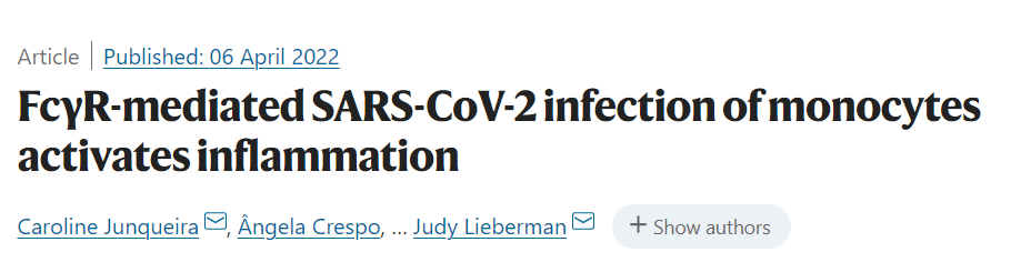 近期,来自波士顿儿童医院的研究团队首次揭开了这一问题的答案,令人意外的是,新冠病毒竟然会感染免疫细胞,导致单核细胞和肺部巨噬细胞发生炎性坏死,并且这一过程是靠着新冠抗体在发挥着“牵线搭桥”的作用。该研究以加速预览(Accelerated Article Preview)的形式,于4月6日在Nature(图1)官网上线。