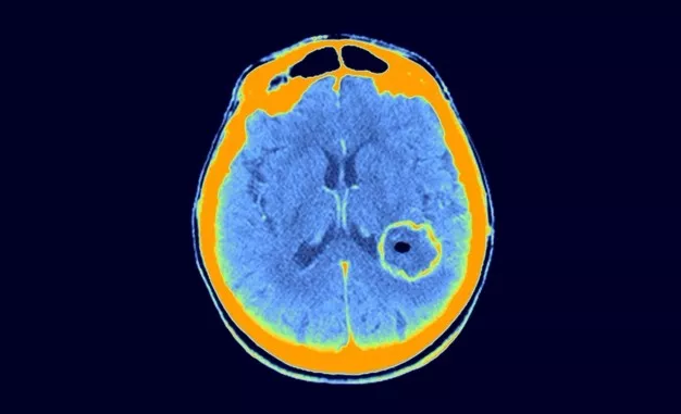 胶质母细胞瘤(患者脑扫描中所示的圆形区域)是在小鼠模型中检测的癌症之一。