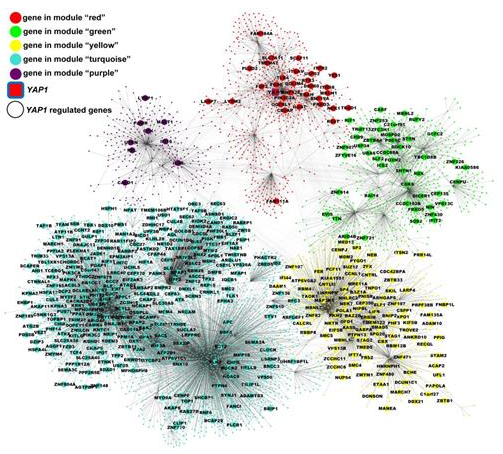 图 1.YAP1 表达水平的变化影响整个 AD 基因表达调控网络
