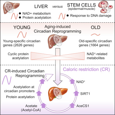 研究衰老如何影响生物钟控制代谢通路的科学家们发现低热量饮食(low-calorie diet, 也译作低卡路里饮食)有助让这些能量调节过程运转,并且有助让身体更加年轻。在一项新的研究中,美国加州大学尔湾分校表观遗传学与代谢中心主任Paolo Sassone-Corsi和同事们揭示出作为生理衰老(physiological aging)的结果,生物钟(或者说昼夜节律)如何发生变化。这种生物钟控制的直接与这种衰老过程相关联的通路是建立在细胞内高效的能量代谢的基础上的。相关研究结果发表在2017年8月10日的Cell期刊上,论文标题为“Circadian Reprogramming in the Liver Identifies Metabolic Pathways of Aging”。Sassone-Corsi团队获得相同的一组小鼠在6个月大和18个月大时的肝脏组织样品,随后开展测试。细胞内的能量代谢处于精准的生物钟控制之下。这些研究人员发现尽管在较老小鼠的生物钟控制的代谢系统中,这种24小时周期(24-hour cycle)仍然是相同的,但是基于细胞的能量使用,开启和关闭基因的生物种机制发生显著的变化。简而言之,较老的细胞低效率地加工能量。Sassone-Corsi说,“这种机制在年轻的小鼠中发挥良好,但是它在年老的小鼠中基本上失效了。”然而,在第二组年老小鼠中,在6个月内给这些小鼠喂食卡路里减少30%的饮食之后,这些研究人员发现细胞内的能量加工远不只是保持不变。Sassone-Corsi说,“事实上,热量限制(或者说卡路里限制)通过以一种最为强效的方式让生物钟恢复年轻而发挥作用。在这种情形下,一种良好的生物钟意味着良好的抗衰老。”合作证实在发表在同期Cell期刊上的另一项标题为“Aged Stem Cells Reprogram Their Daily Rhythmic Functions to Adapt to Stress”的研究中,来自西班牙巴塞罗那生物医学研究所的Salvador Aznar Benitah团队与Sassone-Corsi团队合作测试了生物钟在来自年轻小鼠和年老小鼠的皮肤干细胞中的运转情况。他们也发现低热量饮食维持了大多数年轻的生物钟功能。Aznar Benitah说,“这种低热量饮食极大地阻止生理衰老的影响。让干细细胞保持‘年轻’是比较重要的,这是因为这些细胞最终更新和维持着组织中的非常明显的昼夜周期。吃得更少似乎阻止组织衰老,因此阻止干细胞重编程它们的生物钟活性。”根据加州大学尔湾分校的研究人员和巴塞罗那生物医学研究所的研究人员的说法,这两项研究能够有助解释低热量饮食如何延缓小鼠衰老。这些结果对人类衰老的影响可能是非常深远的。这些研究人员说,进一步研究代谢为何在干细胞衰老过程中发挥着如此重要的作用是比较重要的,而且一旦鉴定出促进或延缓衰老的生物钟关联性,就有可能开发出能够调节这种生物钟关联性的疗法。在之前的果蝇研究中,人们已证实低热量饮食能够延长寿命,但是这两项新的研究是首次证实热量限制影响身体生物钟参与细胞中的衰老过程。Sassone-Corsi说,“这些研究揭示出控制衰老的细胞通路。这些发现从药物角度清楚地解释了如何控制衰老。”生物钟关联Sassone-Corsi和他的同事们在大约10年前首次证实了生物钟和代谢之间存在的关联,鉴定出了一种被称作SIRT1的生物钟蛋白酶发挥作用的代谢通路。SIRT1检测细胞中的能量水平;它的活性受到细胞消耗多少营养物的调节。此外,它有助细胞抵抗氧化应激和辐射诱导的应激。SIRT1也与炎性反应、糖尿病和衰老存在关联。参考资料:Shogo Sato, Guiomar Solanas, Francisca Oliveira Peixoto et al. Circadian Reprogramming in the Liver Identifies Metabolic Pathways of Aging. Cell, 10 August 2017, 170(4):664–677, doi:10.1016/j.cell.2017.07.042Shogo Sato, Guiomar Solanas, Francisca Oliveira Peixoto et al. Aged Stem Cells Reprogram Their Daily Rhythmic Functions to Adapt to Stress. Cell, 10 August 2017, 170(4):678–692, doi:10.1016/j.cell.2017.07.035 - THE END -