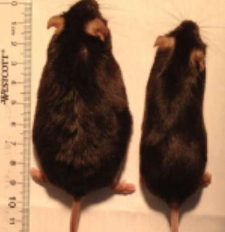 右边嗅觉失灵的小鼠尽管吃的不少,但它们比左边的正常小鼠要苗条许多。图片来源:Cell Metabolism