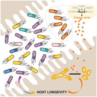 图片来自Cell, doi:10.1016/j.cell.2017.05.036利用源自肠道细菌的补充物延缓衰老过程可能有朝一日是可行的。来自美国贝勒医学院和德克萨斯大学休斯顿健康科学中心的研究人员在秀丽隐杆线虫中鉴定出延长寿命、也延缓肿瘤进展和β-淀粉样蛋白堆积的细菌基因和化合物。β-淀粉样蛋白是一种与阿尔茨海默病相关联的化合物。相关研究结果发表在2017年6月15日的Cell期刊上,论文标题为“Microbial Genetic Composition Tunes Host Longevity”。论文通信作者、贝勒医学院赫芬顿老化中心分子与人类遗传学副教授Meng Wang博士说,“科学界日益意识到我们的人体与我们体内的微生物组之间的相互作用能够影响很多功能,如认知活动、代谢活动和衰老。在这项研究中,我们研究了这种微生物组的基因组成可能也在寿命中发挥着重要的作用。”在哺乳动物中因存在技术上的挑战,这种问题是很难研究的,因此这些研究人员选择秀丽隐杆线虫开展研究。在这些线虫的两到三周长的寿命中,它们以细菌为食,长到成年,繁殖,逐渐衰老,丧失力量和健康,最终死亡。全世界的很多研究实验室(包括Wang实验室)利用秀丽隐杆线虫了解基础的生物学过程。测试上千个基因,每次测试一个为了探究单个细菌基因对秀丽隐杆线虫寿命的影响,Wang与贝勒医学院分子与人类遗传学副教授Christophe Herman博士和专门开展细菌遗传学研究的其他同事们合作开展研究。他们采用了一种完整的大肠杆菌基因缺失文库;一组大肠杆菌集合,每种大肠杆菌缺失将近4000个基因中的一个。Wang说,“我们给秀丽隐杆线虫喂食每种突变细菌,然后研究这些线虫的寿命。在我们测试的将近4000个细菌基因中,29个基因当缺失时会增加这些线虫的寿命。12种突变细菌也会阻止这些线虫发生肿瘤生长和β-淀粉样蛋白堆积。”进一步的实验表明一些突变细菌通过作用于这些线虫中的一些已知与衰老相关的过程增加寿命。其他的突变细菌通过过量产生荚膜异多糖酸(colanic acid)增加这些线虫的寿命。当这些研究人员给秀丽隐杆线虫提供纯化的荚膜异多糖酸时,这些线虫也活得更长。荚膜异多糖酸也在实验室果蝇和在实验室培养的哺乳动物细胞中表现出类似的影响。这些研究人员提出基于这些结果,人们在未来有可能开发出能够有助延缓衰老过程的细菌制剂或它们的化合物。荚膜异多糖酸介导细菌与线粒体之间的交谈有趣的是,这些研究人员发现荚膜异多糖酸调节线粒体融合与分裂的动态变化。线粒体是给细胞的功能提供能量的细胞器。Wang说,“这些发现也是令人关注的,而且从生物学角度而言,对我们理解宿主-细菌通信产生影响。线粒体似乎是由几百万年前侵入原始细胞的细菌进化而来的。我们的发现提示着细菌的产物如今仍然能够干预我们的细胞中的线粒体之间的通信。我们认为这种通信是非常重要的,而且我们在这里提供首个证据来证实这一点。充分地理解细菌-线粒体通信能够有助我们更深地理解细菌和它们的宿主之间的相互作用。” Cell:肠道细菌有望延缓衰老,提高动物寿命