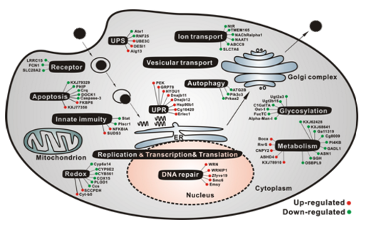 图 1. 寨卡病毒感染引起细胞内多个生物过程的蛋白发生变化