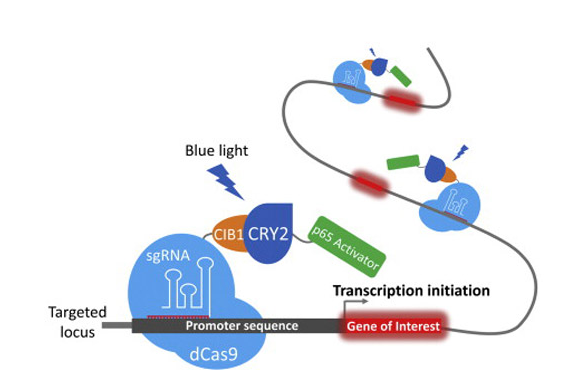 由东京大学MoritoshiSato和杜克大学CharlesGersbach带领的两项研究,开发出了基于CRISPR-Cas9的转录激活系统,利用光激活以CRISPR-Cas9为基础的基因目标,以此实现高精度控制基因编辑或表达。该系统包括一对融合蛋白:一个蛋白把灭活Cas9蛋白结合到一个称为CIb1的蛋白,另外一个蛋白将一个转录激活结构域结合到隐花色素2(CRY2)。用蓝光照亮表达这两个蛋白质的细胞和引导性RNA,可使两个蛋白质片段配对,将转录激活结构域拴在DNA上,并激活转录。本设计为以前这种构成性的合成转录因子引入了一种调控机制。这两项研究分别发表在Cell旗下子刊《CellChemistry&Biology》、Nature旗下子刊《NatureChemicalBiology》。