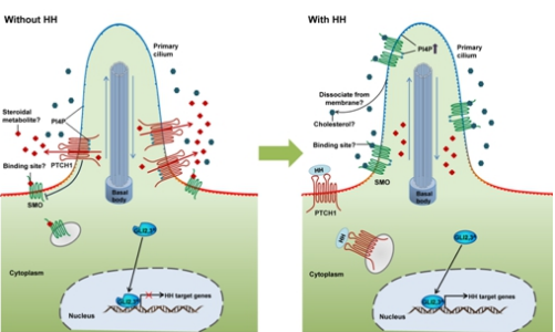 Hedgehog 信号通路内源小分子调控机制的假说模型Hedgehog 信号通路是某些成体干细胞和肿瘤干细胞的核心信号通路之一,它的异常可导致多种退行性病变和癌症。自 1980 年 Hedgehog 信号通路被发现和命名以来,历经数十年的探索、研究和开发,针对 Hedgehog 的靶向抗癌药 vismodegib 和 sonidegib 已分别于 2012 年和 2015 年被美国 FDA 批准。因此,Hedgehog 通路是从基础研究走向临床应用的成功案例之一。小分子调控机制的研究,尤其是面向 Hedgehog 通路这类重要靶点的研究,往往发展成为通向临床药物的钥匙,因此备受研究人员关注。此前,由于在该领域的出色工作,中国科学院动物研究所研究员王宇和南加州大学教授 Andrew P. McMahon 受 Elife 杂志邀请,短文点评了斯坦福大学、哈佛大学、牛津大学领域同行的关于 Hedgehog 信号通路小分子调控机制的多篇研究论文。近期,再受 Cell 旗下《细胞化学生物学》(Cell Chemical Biology)杂志邀请,王宇研究组撰写了题为 Hedgehog Signaling: From Basic Biology to Cancer Therapy 的综述文章。该文系统总结了近年来 Hedgehog 信号通路调控机制的研究进展,特别是小分子调控机制,并就领域内主要的疑点之一——内源小分子调控机制提出了一个新的假说模型。作者对多年以来从一些小分子药物在治疗癌症的临床试验中取得的经验教训进行了总结,对更精准的临床治疗提出了想法和建议。最后,作者对临床试验中出现耐药反应的原因进行了深入探讨,提出了解决这些瓶颈问题的思路,以期启发新一代抗癌药的研发工作。该文章于 3 月 10 日在线发表于 Cell Chemical Biology,第一作者为王宇组研究生吴付佳,通讯作者为王宇,研究组张玉、孙博以及 Andrew P. McMahon 也参与了该文章的撰写。这项工作得到了中科院动物所和干细胞与生殖生物学国家重点实验室研究人员,尤其是中科院院士周琪的大力支持和帮助,同时得到了国家“973”项目、国家自然基金委和中科院的资助。http://www.cell.com/cell-chemical-biology/fulltext/S2451-9456(17)30058-2 - THE END -