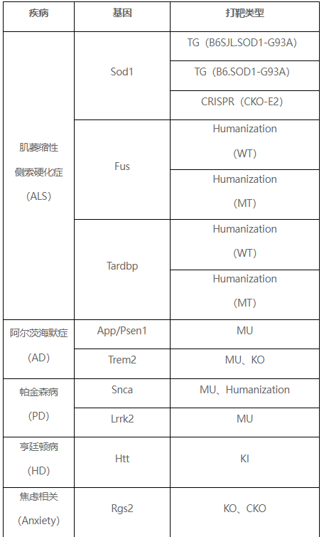 为加速ALS药物研发,赛业生物基于自主研发的HUGO-GTTM计划,推出了全基因组人源化模型:hTARDBP、hFUS小鼠,即用人TARDBP或FUS基因(全基因组)原位替换鼠源基因,构建更贴近真实世界生物机制的ALS临床前研究模型。除了野生型全基因组人源化模型,我们还在人源基因上引入了热门点突变构建疾病模型和TG疾病模型,更适用于遗传性疾病研究和基因治疗药物开发。