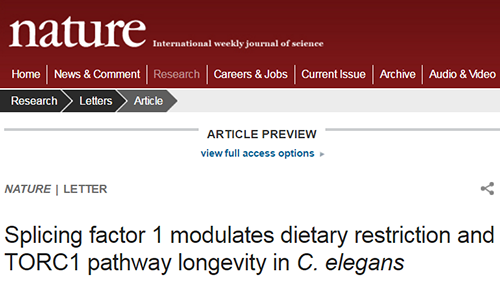 Nature:Splicing factor 1 modulates dietary restriction and TORC1 pathway longevity in C. elegans