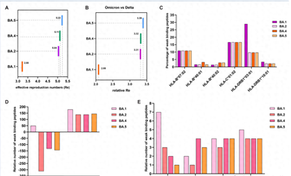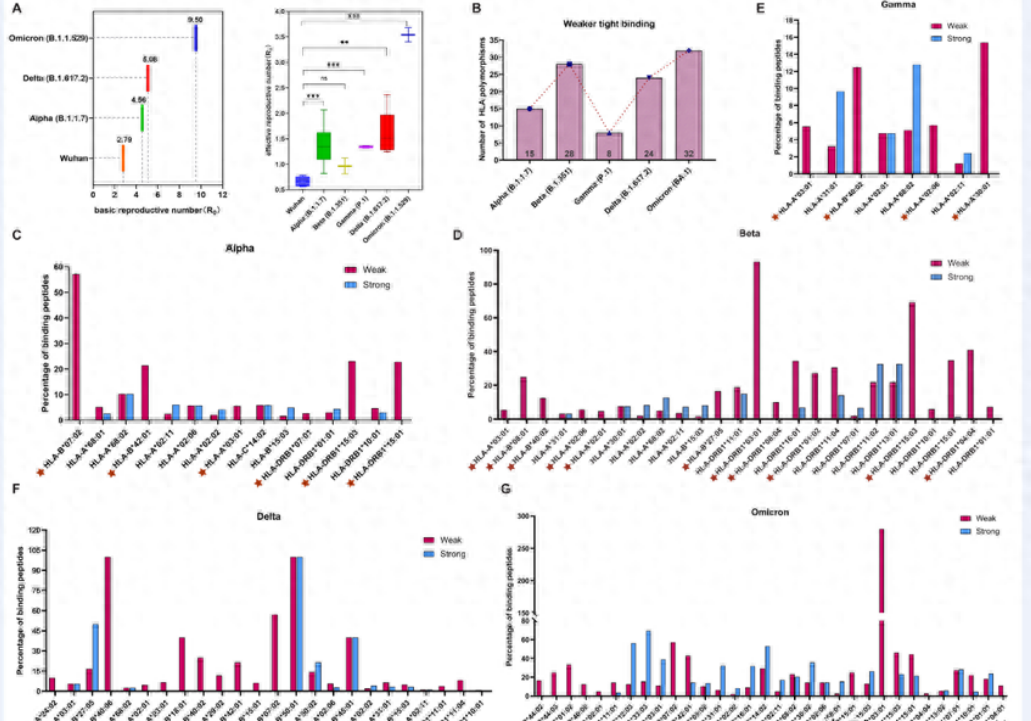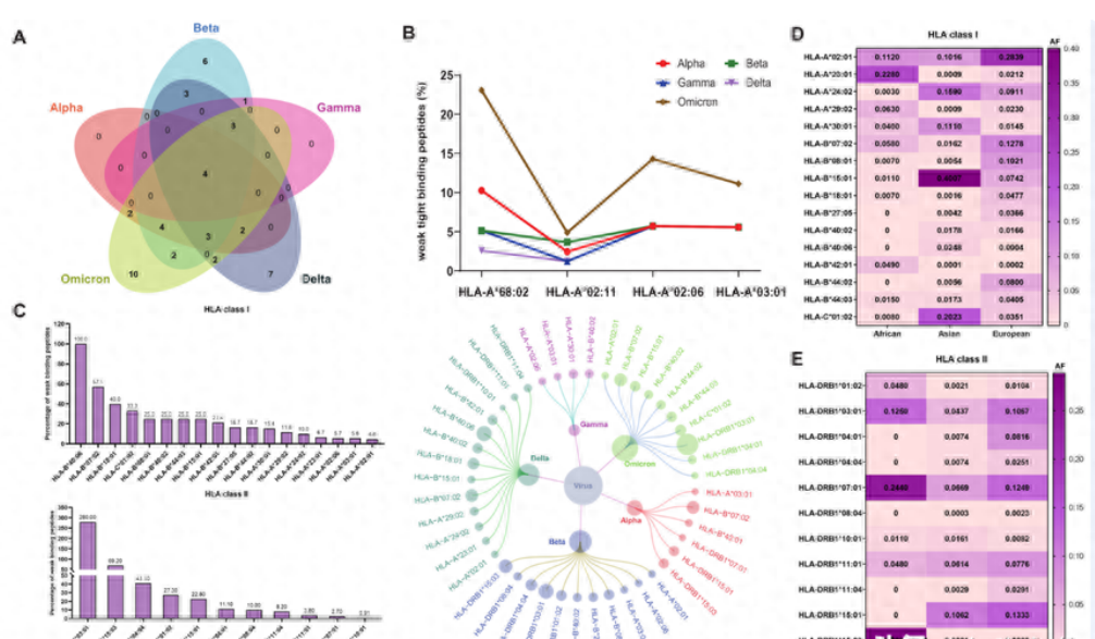 图6. Omicro不同分支的HLA多态性及免疫逃避.