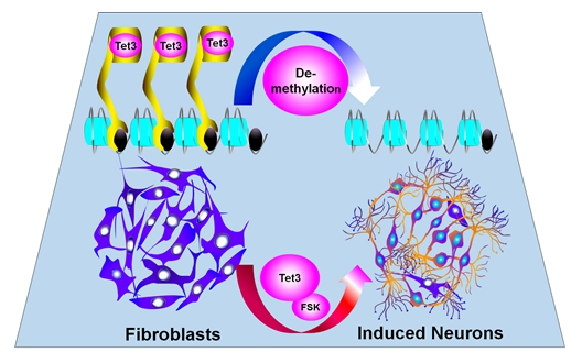 通过细胞直接转分化获得功能细胞为疾病的治疗提供了新的、更安全的可替代细胞来源,为细胞命运调控研究提供了新的思路。但是目前转分化策略大多都是依靠转录因子以及小化合物组合的方式来实现直接转分化的过程,而对于表观遗传修饰与转分化的关系却知之甚少。近日,中国科学院动物研究所焦建伟研究组首次实现了通过Tet3的表观修饰促进神经细胞转分化。