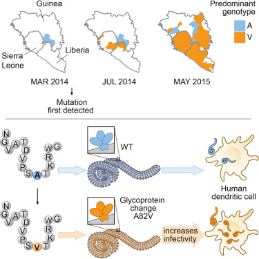 两个独立的研究小组报道,研究人员鉴定出在2013年到2016年在西非发生的埃博拉病毒(Ebola virus, EBOV)流行病期间出现的EBOV突变会增加这种病毒感染人细胞的能力。