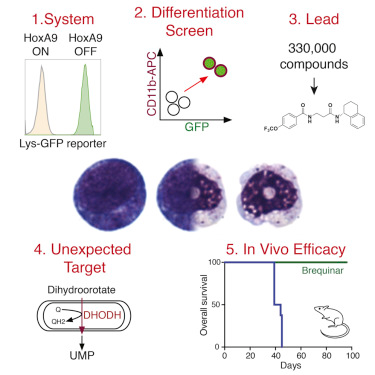 在一项新的研究中,来自美国麻省总医院和哈佛干细胞研究所的研究人员鉴定出一种药物化合物可阻止小鼠体内的急性髓性白血病(acute myeloid leukemia, AML)发展,其中AML是一种骨髓癌症,而且人们在过去40年的时间内未开发出针对这种癌症的新药物。相关研究结果于2016年9月15日在线发表在Cell期刊上,论文标题为“Inhibition of Dihydroorotate Dehydrogenase Overcomes Differentiation Blockade in Acute Myeloid Leukemia”。论文通信作者为麻省总医院再生医学中心副主任David Sykes和主任David Scadden。