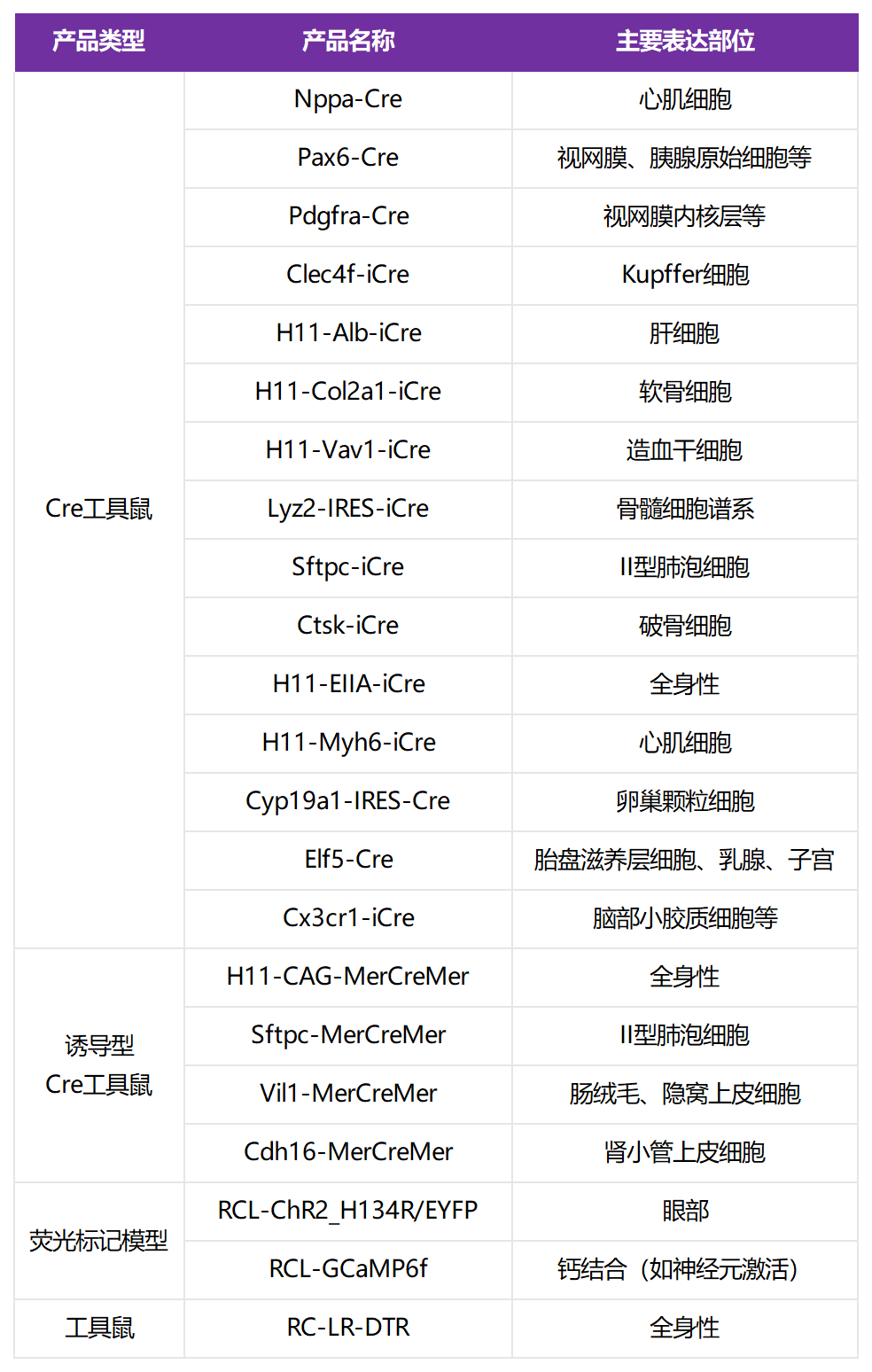 Cre工具鼠模型构建
